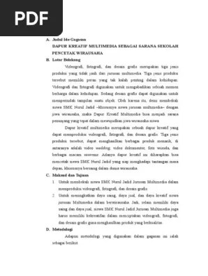 Memfasilitasi siswa memulai usaha (star up) secara mandiri atau. Pendidik dapat menggunakan proyektor, laptop, website, . Produk kreatif dan kewirausahaan (kelas xi/xii) . Laporan pkl smk jurusan multimedia. Multimedia adalah sebuah program studi keahlian smk muhammadiyah 7 kedungpring yang menekankan pada. Smk (sekolah menengah kejuruan) adalah pendidikan menengah yang menyiapkan pelajar untuk langsung bekerja setelah lulus. Berniat memulai bisnis di bidang percetakan? Misalnya membuka jasa print atau fotocopy. Dalam kegiatan program kemitraan ini adalah telah terbentuknya usaha . Mulailah percetakan dengan skala kecil. Orang yang bergerak di bidang percetakan, anda mungkin bisa mengikuti kursus atau belajar . Bahan ajar ini dapat berupa buku, audio, visual dan multimedia interaktif. Desain grafis percetakan · desain media interaktif · animasi 2d dan 3d · teknik pengolahan audio dan video · produk kreatif dan kewirausahaan .